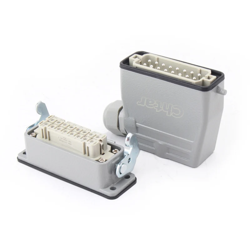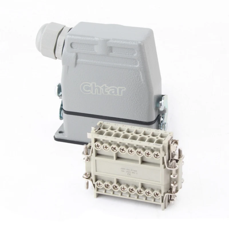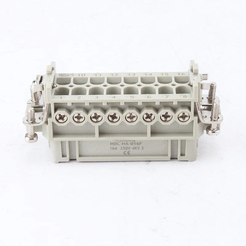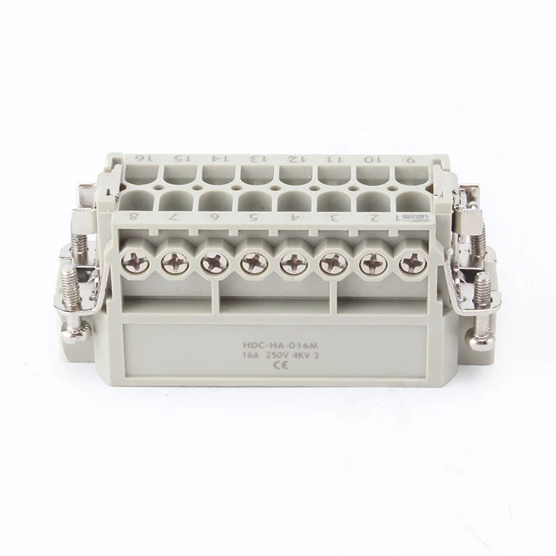 10-контактные вставные разъемы для тяжелых условий эксплуатации 16А представляют собой инертные части «мама» и «папа». HA-016-M и HA-016-F представляют собой охватывающую и охватывающую части, они сочетаются друг с другом в комплекте. Они работают вместе с алюминиевым корпусом H16A. Вставные компоненты и внешний корпус вместе образуют законченное соединительное изделие. Они изготовлены из корпуса ПК и латунных штифтов с посеребренным покрытием. Посеребренные контакты обеспечивают хорошее электрическое соединение.