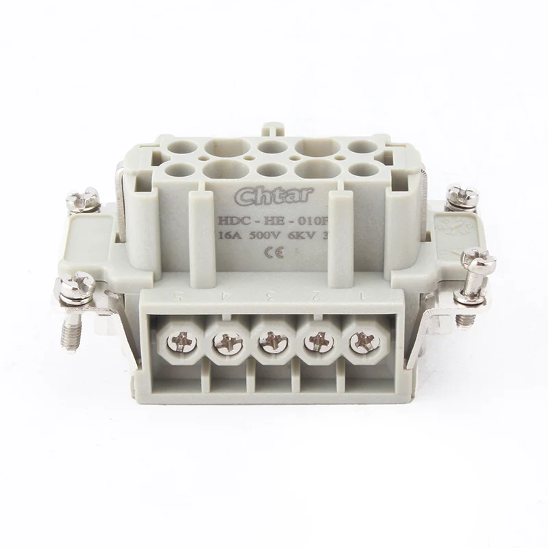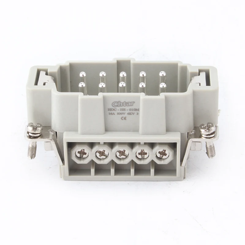 Прочный 10-контактный вставной разъем CHTAR для тяжелых условий эксплуатации M/F используется вместе с корпусом H10B разъема для тяжелых условий эксплуатации. Он имеет 10 контактов и подключен 10 проводами. Они изготовлены из высокопрочного поликарбоната и имеют внутри латунные посеребренные контакты. Мы с нетерпением ждем возможности стать вашим надежным долгосрочным партнером в Китае.