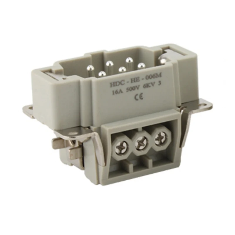 6-контактные разъемы M/F для тяжелых условий эксплуатации работают при токе 16 А. Это 16 контактов для контакта с проводами. Он подходит для различных условий работы и широко используется в автоматических отраслях и видах подключения машин.