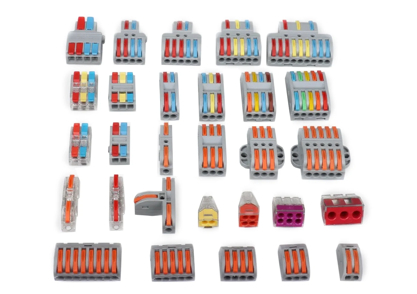 Быстроразъемные соединители для сращивания проводов с рычагами являются хорошо известными вставными соединителями для проводов. Это устройства электрического соединения, предназначенные для надежного соединения двух или более одножильных или многожильных медных проводников. Их основная функция — создать надежное, постоянное и не требующее обслуживания соединение электрической проводки без необходимости использования таких инструментов, как отвертки, или таких методов, как скручивание и склеивание.